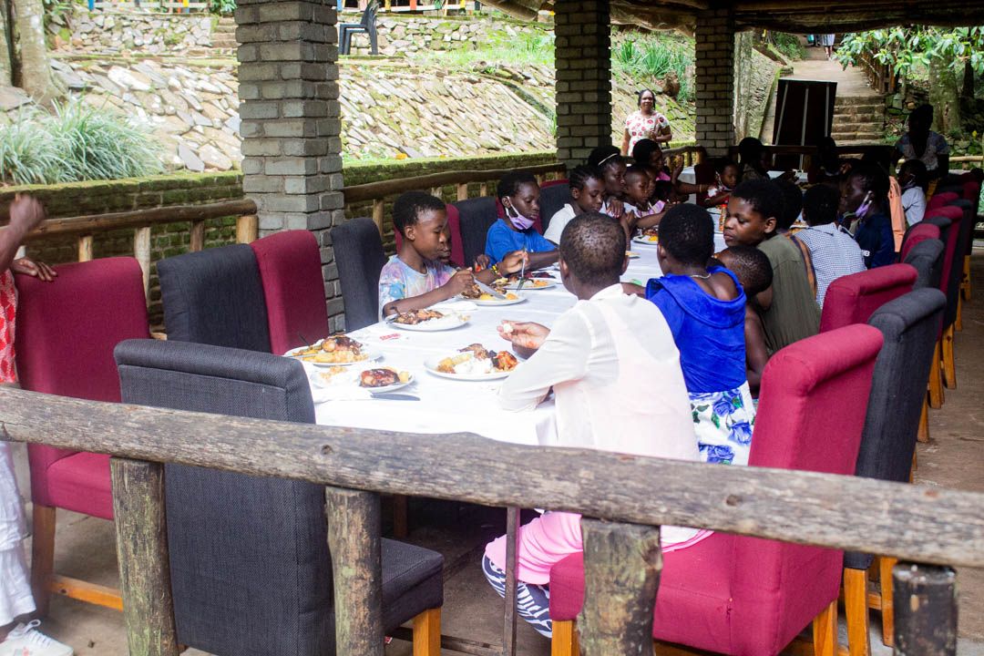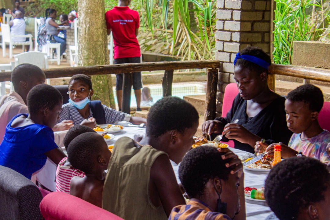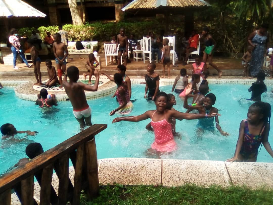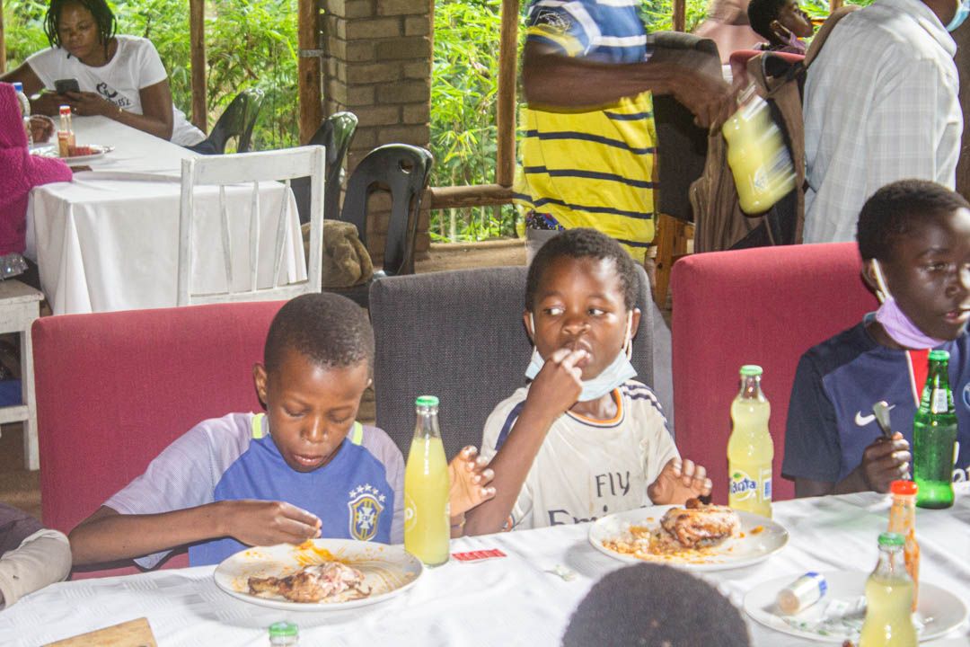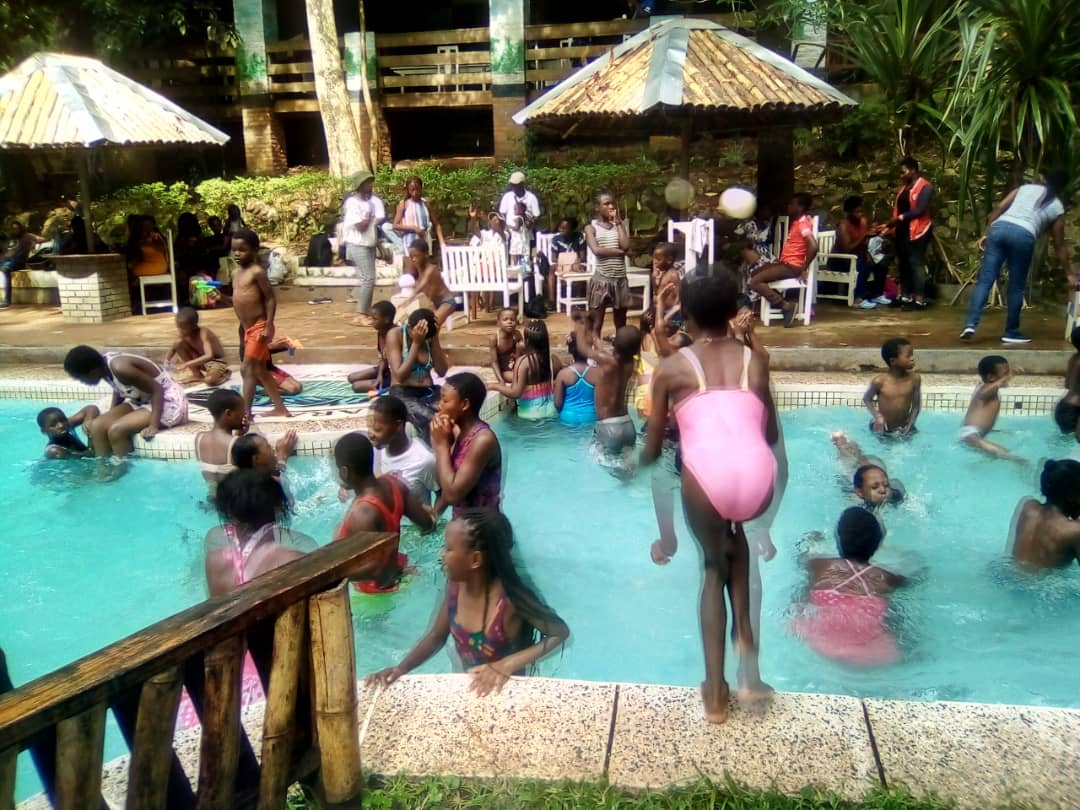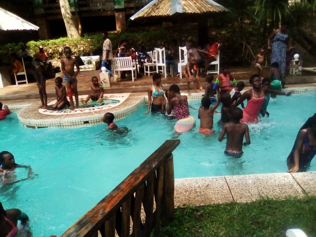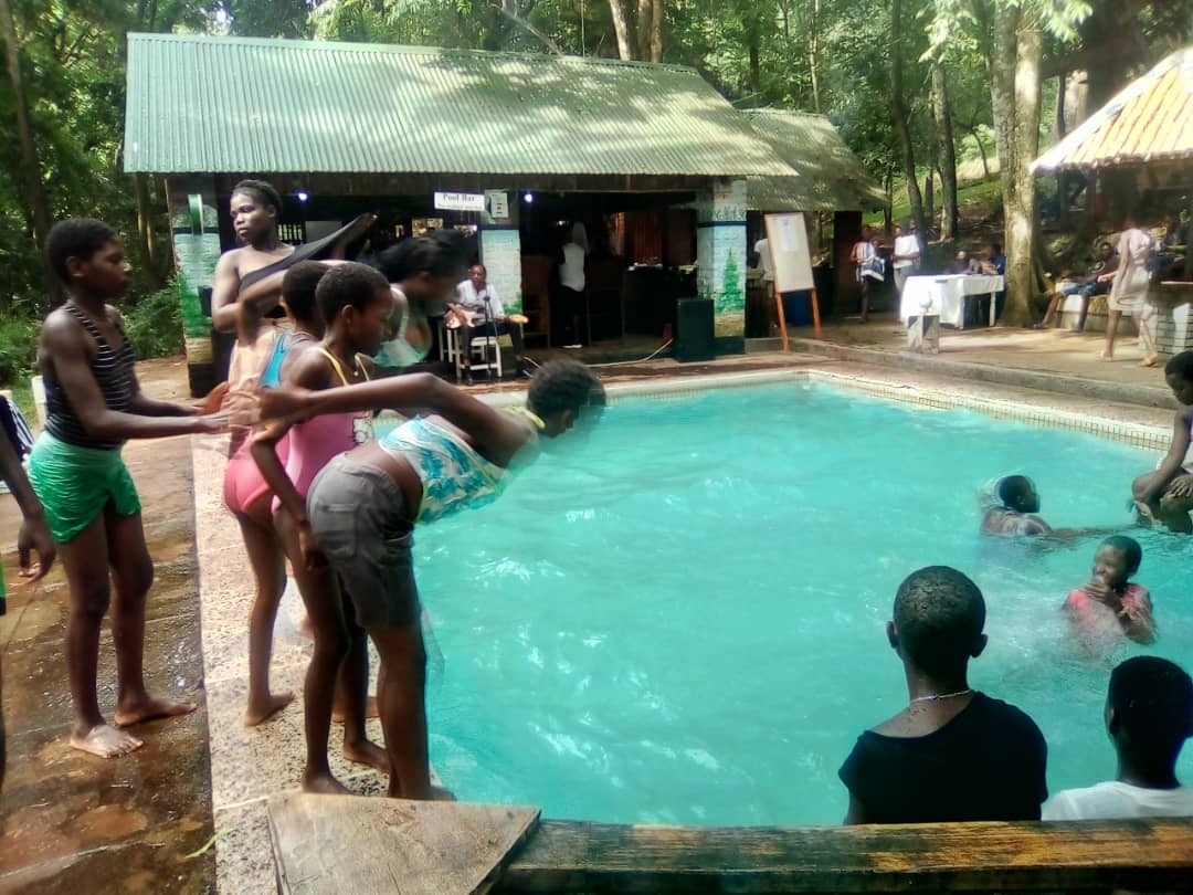We had a splendid lunch with Nsima, rice with chicken, super get, snacks, sobo and each a bottle of soft drink. Aside from the swimming and fun the kids had, we were also kindly treated with local music and dance. We so, have enjoyed the live band including traditional band & dancers!