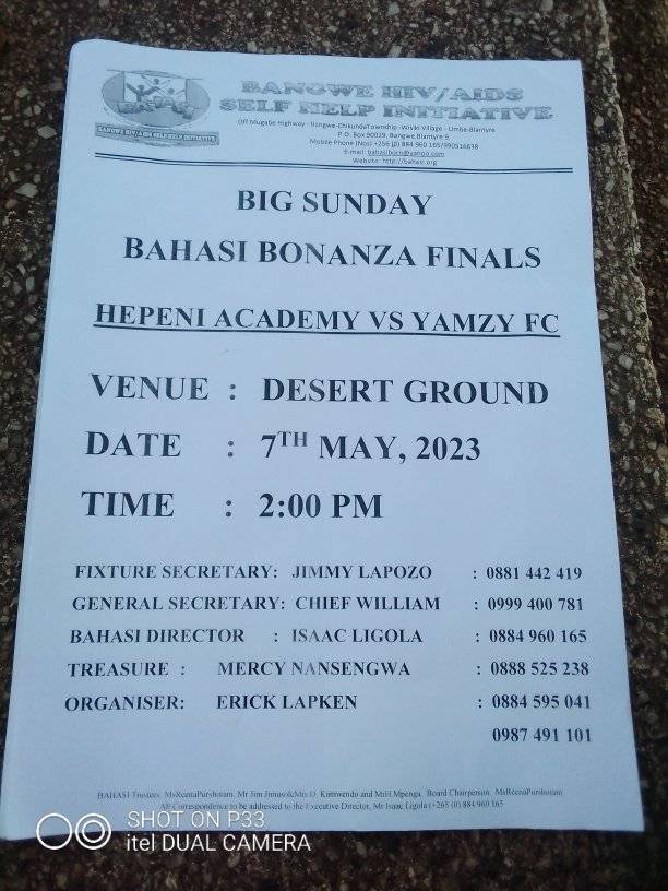 Thanks to HMJ hardware, Mr and Mrs Jika for sponsoring the league mostly in prizes and thanks to honourable Orphan Shaba MP Blantyre bangwe constituency, Mr and Mrs ng'oma and Mr and Mrs Haiya for supporting this league.