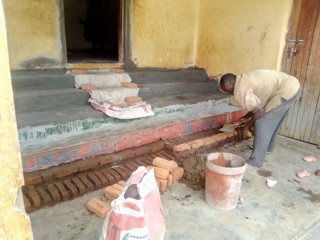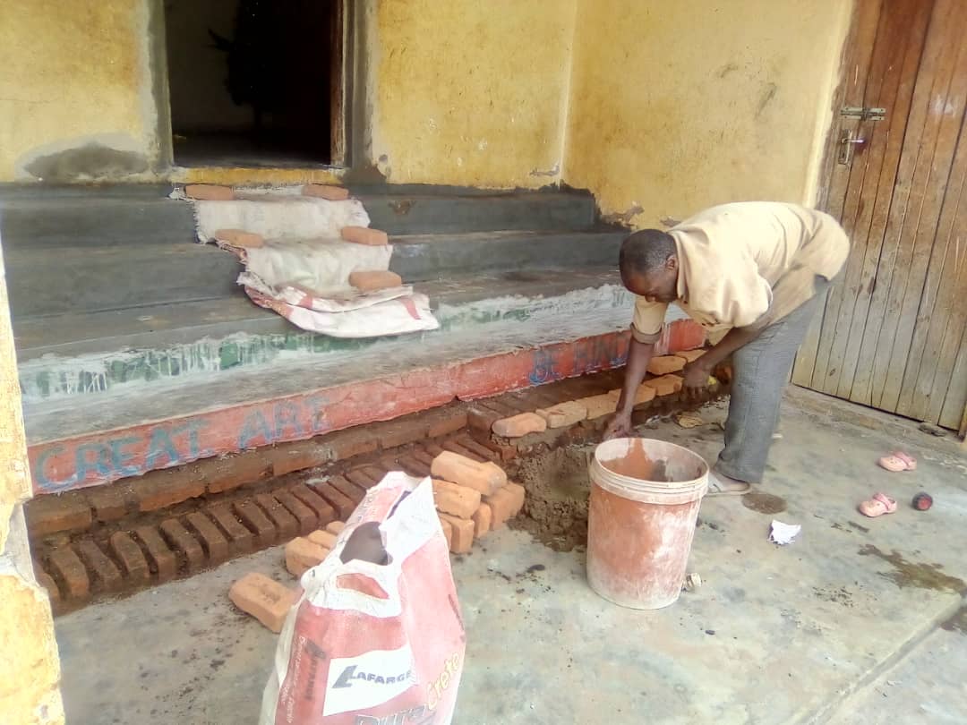 To accommodate our new volunteers around the middle of this month, we needed to seal of a wall. We had around 3.000 bricks and of course needed lots of mortar to do the job. We managed include making safe steps.